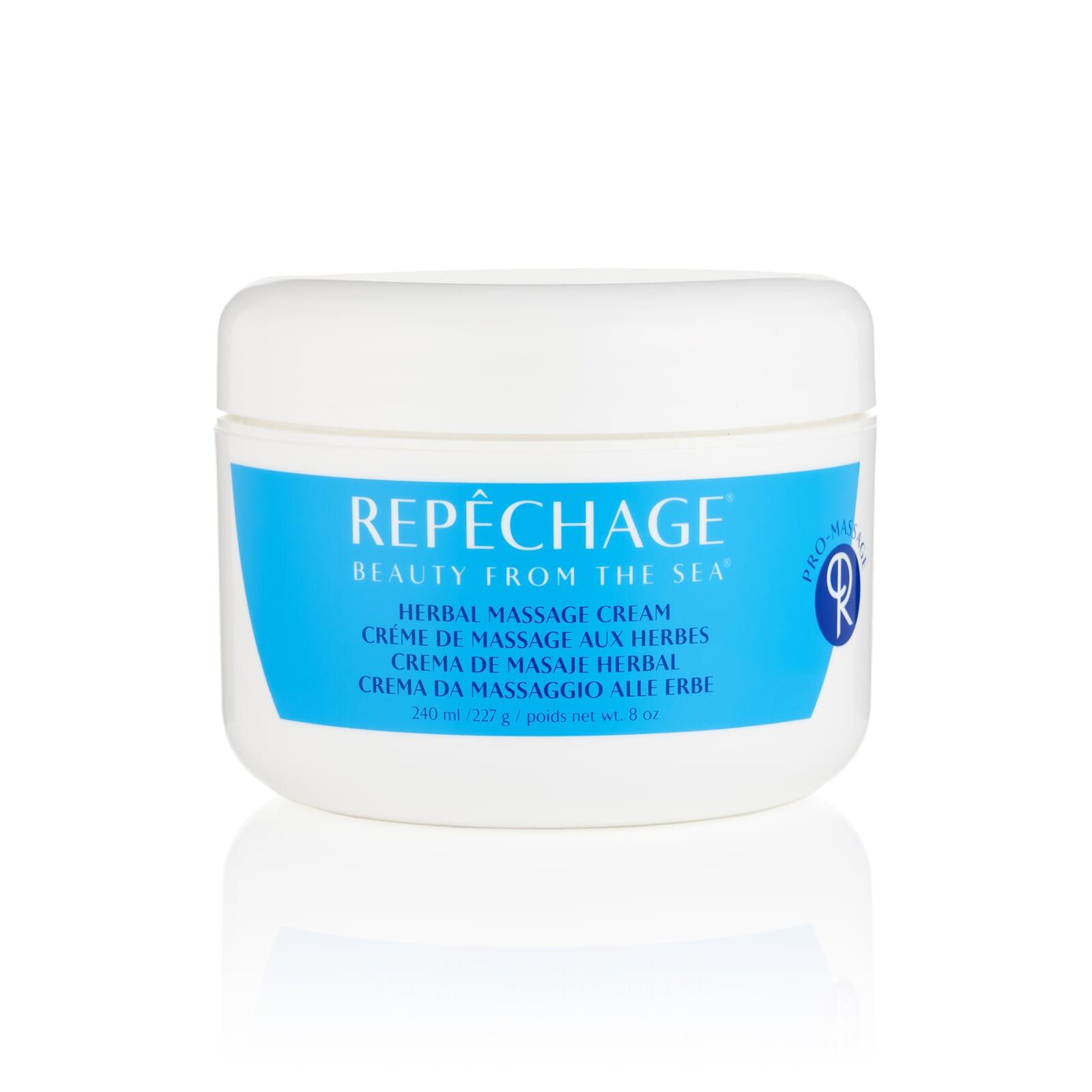 Repêchage® Herbal Massage Cream (Pro Size) is specially formulated for normal to dry skin, delivering optimal glide for professional facial massage techniques. Infused with soothing botanical extracts such as Roman Chamomile, Rose, and Lavender, this cream calms and comforts the skin while allowing for smooth, uninterrupted massage movements. Ideal for use during steaming, it supports relaxation and preps the skin for subsequent facial steps. Use with the Lydia Sarfati Massage Method or as directed by your professional training. Leaves skin soft, comforted, and ready for further treatment. All traces should be removed before performing extractions.