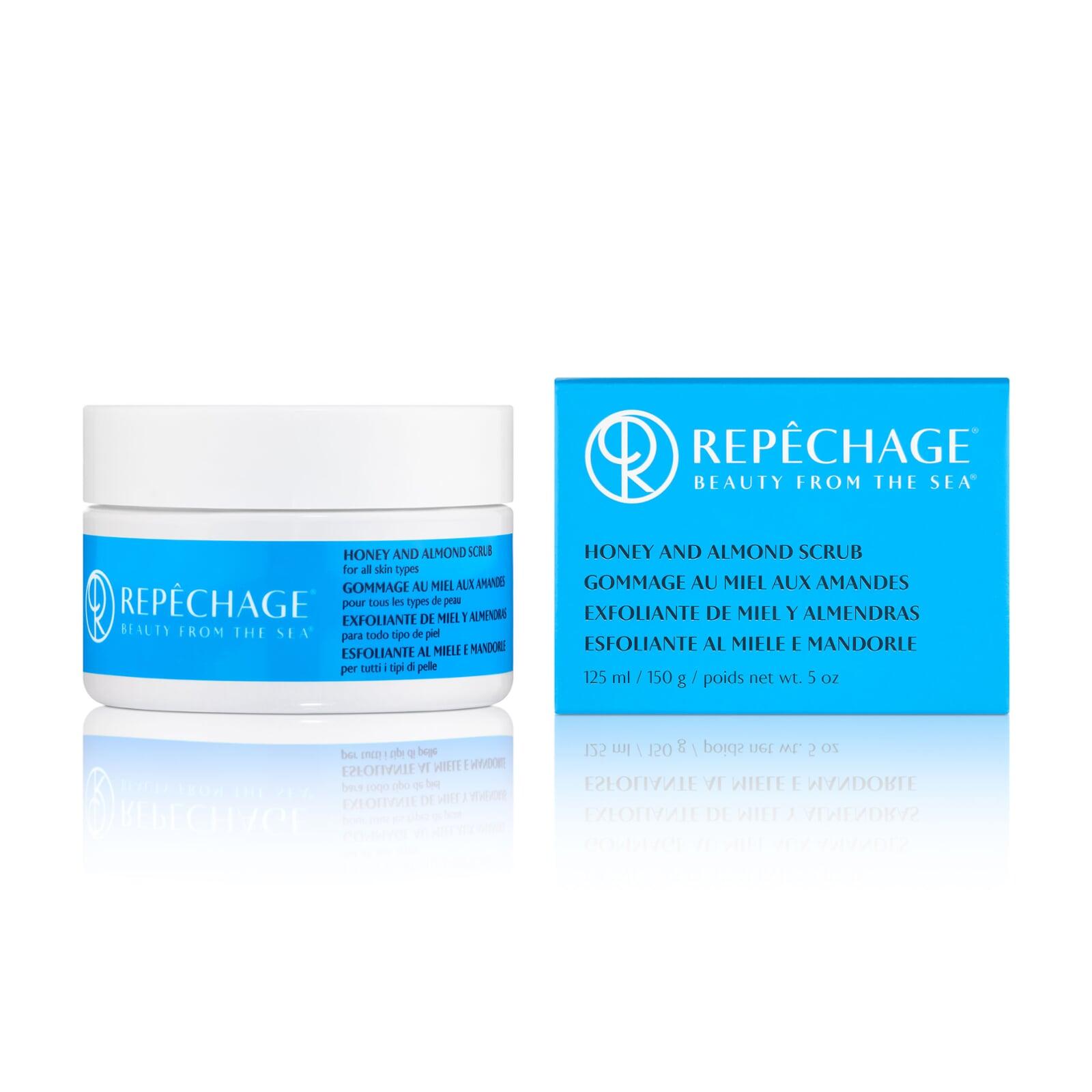 - After cleansing, apply a small amount of Honey Almond Scrub to damp skin.