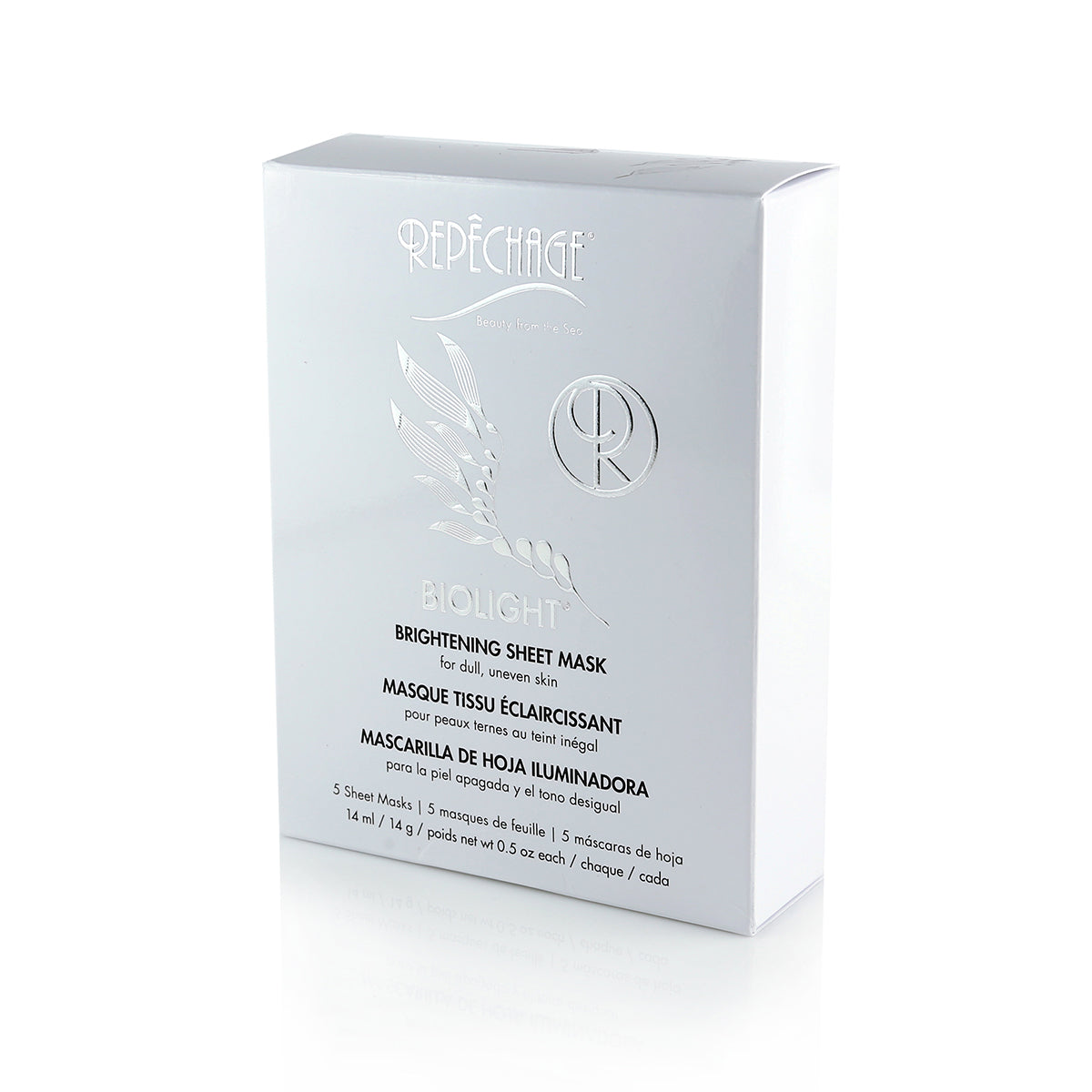 Discover the power of advanced skincare with the Repechage Biolight Brightening Sheet Mask, formulated with Alpha Arbutin and Diglucosyl Gallic Acid to boost radiance and reduce the appearance of uneven pigmentation. Infused with exclusive, nutrient-rich seaweed extracts, it delivers deep hydration and essential antioxidants to revitalize the skin. This mask targets dull, sallow skin, restoring a brighter, more balanced complexion. It supports natural renewal processes, helping reveal a youthful, refreshed glow. Ideal for anyone looking to enhance skin clarity and luminosity with professional-grade results.